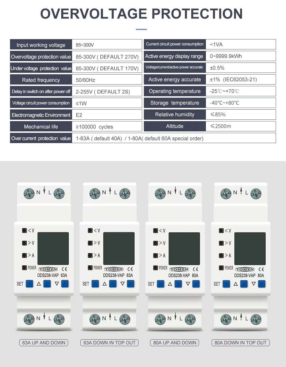 Over current protection value:1-63A(default 40A) 1-80A(default 60Aspecial order)